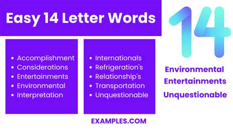 Exploring the world of language can be an exciting journey, and one fascinating aspect is discovering words with specific lengths. In this article, we delve into the realm of 14-letter words, a category that offers a unique challenge and a rich vocabulary to explore. These words, with their extended length, often carry a sense of complexity and depth, making them intriguing to both language enthusiasts and those seeking to expand their linguistic horizons.